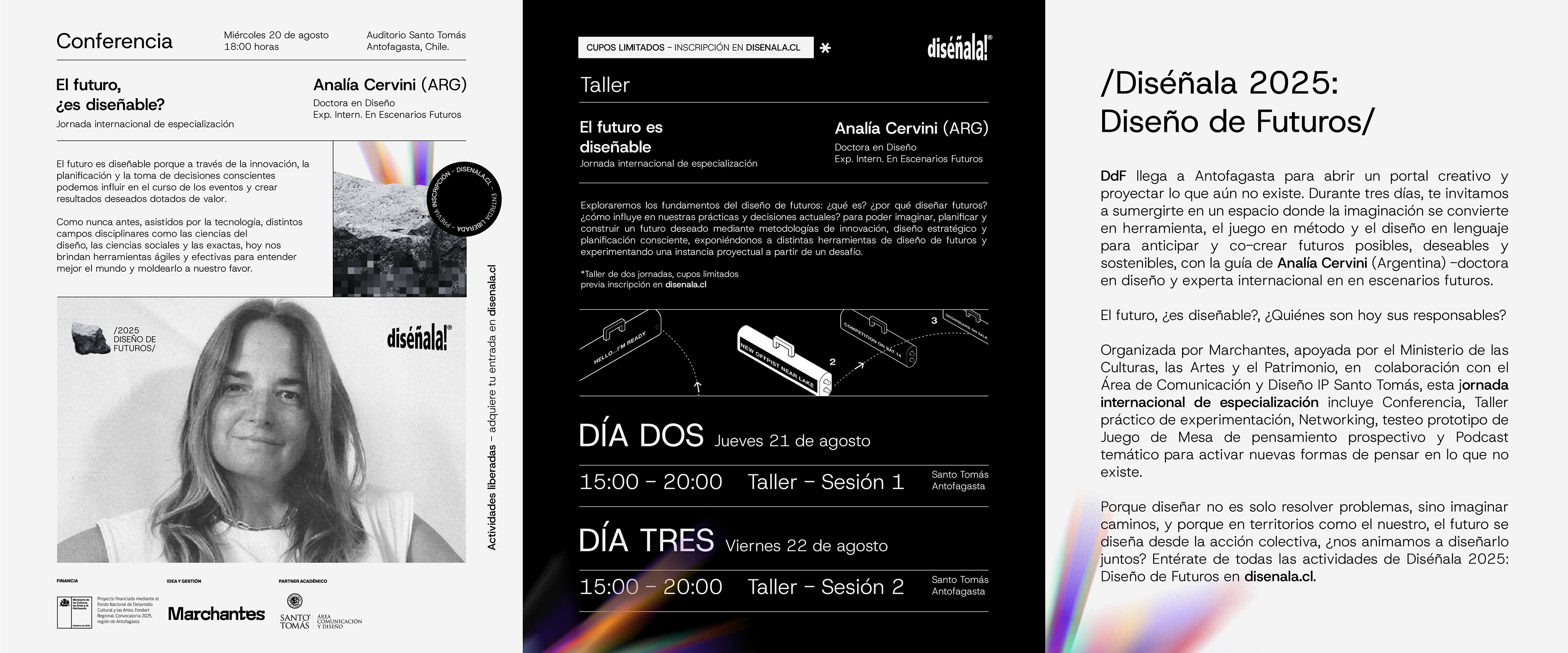 DdF llega a Antofagasta para abrir un portal creativo y proyectar lo que aún no existe. Durante tres días, te invitamos a sumergirte en un espacio donde la imaginación se convierte en herramienta, el juego en método y el diseño en lenguaje para anticipar y co-crear futuros posibles, deseables y sostenibles, con la guía de Analía Cervini (Argentina) -doctora en diseño y experta internacional en en escenarios futuros.